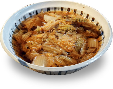 定番のスープです。味の濃い白菜は、ベーコンに負けない存在感です。