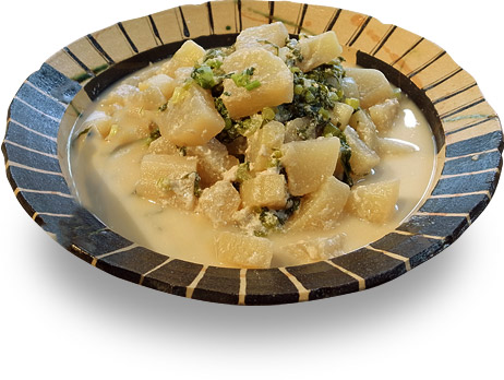 高タンパク低カロリーな豆乳で煮込んだ大根は、ホクホクで優しい味わいです。
