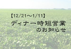 12/21〜1/11 ディナー営業時間を短縮いたします。 いつも都野菜賀茂をご