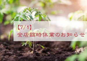いつも都野菜賀茂をご愛顧いただきありがとうございます。下記の日程において、誠に勝手ながらスタッフ研修のため全店臨時休業とさせていただきます。 ◆全店臨時休業日 2022年7月1日(金)