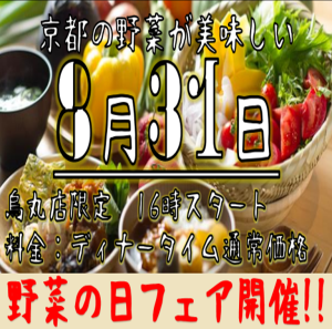 いつも都野菜賀茂をご愛顧いただきありがとうございます。 8月31日は『野菜の日』ということで、野菜が主役のこの日に賀茂では いつものビュッフェと同じお値段で、