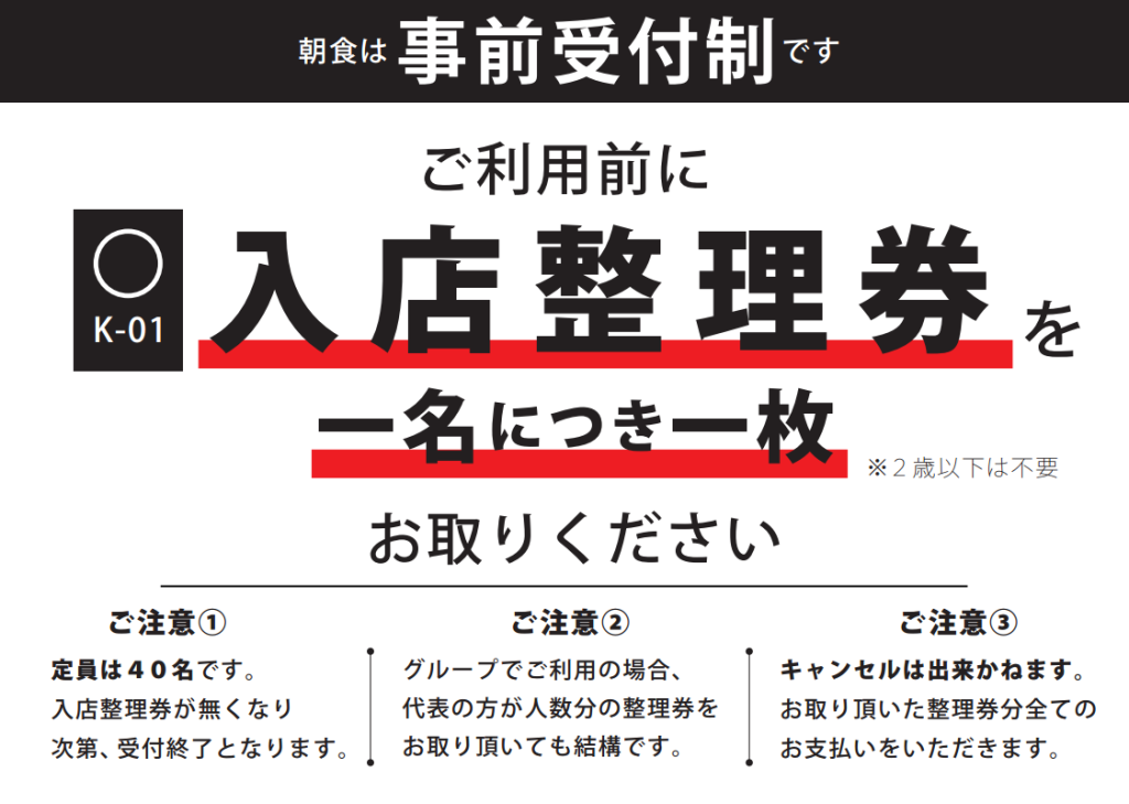 朝7:00より、店頭にて『整理券(入場予約券)』を配布しておりますので、