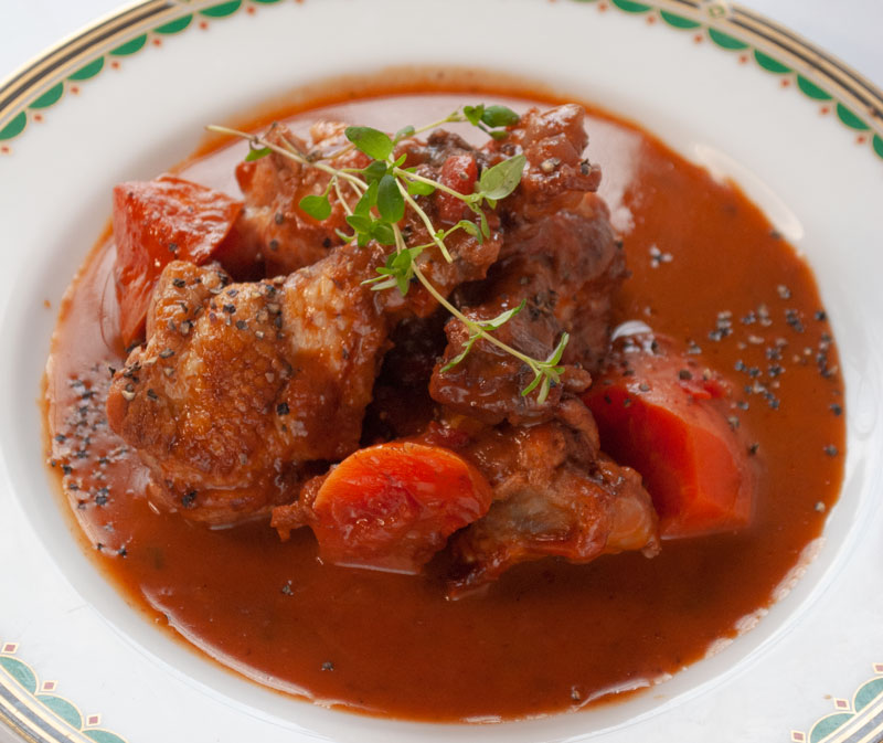 鶏と野菜の出汁がしっかりきいた赤ワインソース。