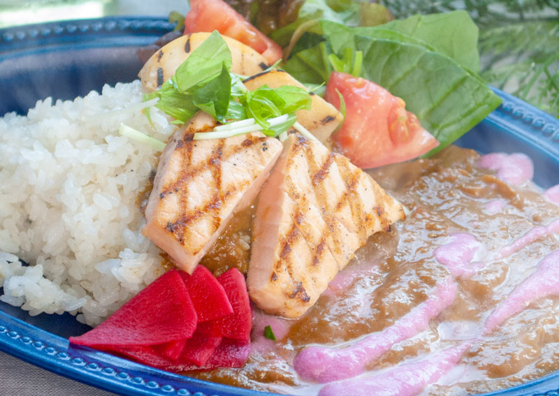 『料理長カレー』のこだわりは、独自ブレンドのスパイスとたっぷりのフルーツ。手間を惜しまずじっくり煮込んで、本格欧風仕立て。旬野菜のグリルやピクルスも良い脇役。