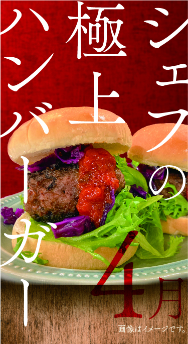 実は肉に懸ける想いも人一倍強いシェフ。こだわり抜いて作ったオリジナルパテに、相性抜群のソースで、口いっぱいに怒濤のジューシー感! シェフ渾身の一作をお見逃し無く!!