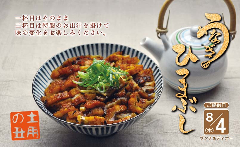 8月4日の「土用の丑の日(二の丑)」には、もちろん『うなぎの ひつまぶし』をご提供します!