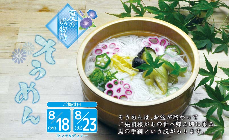 鰻やおそうめんを食べて、夏の暑さを涼やかに乗りきってくださいね。