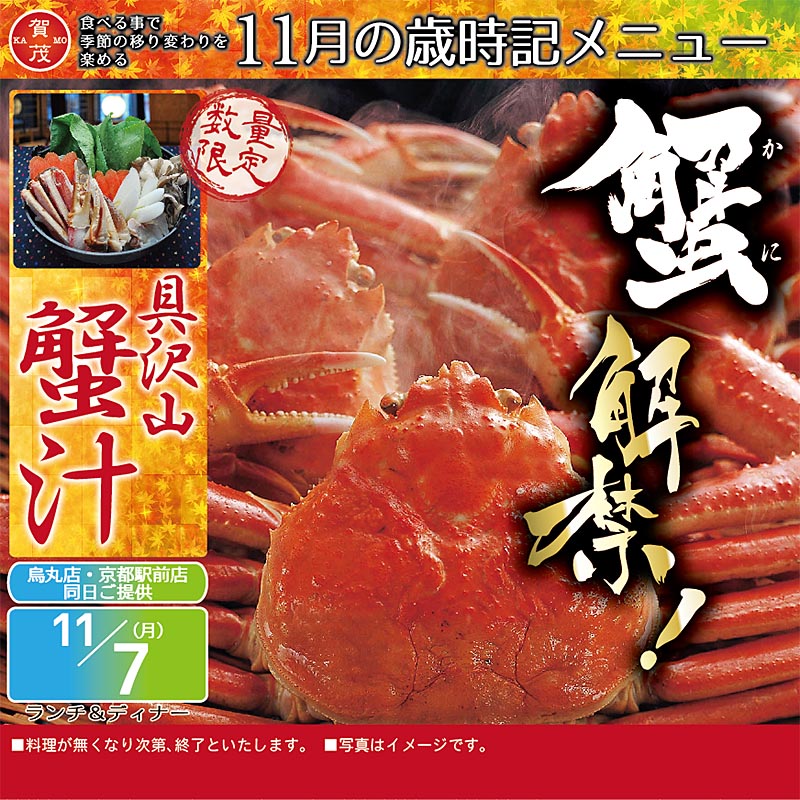 毎年大好評をいただいております、具だくさん蟹汁が今年も登場します!